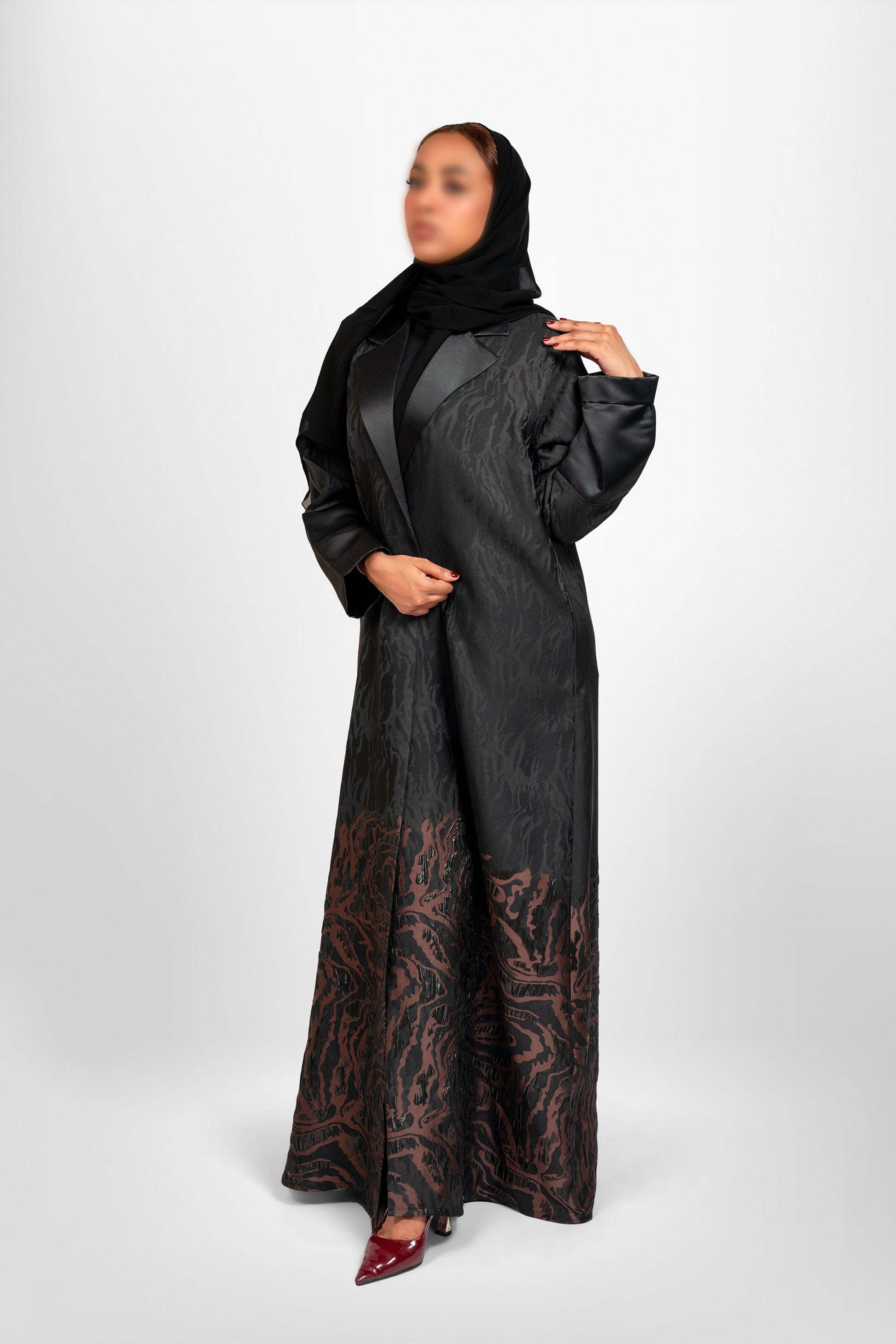 Bouthaina blazer Abaya-(Black- brown)